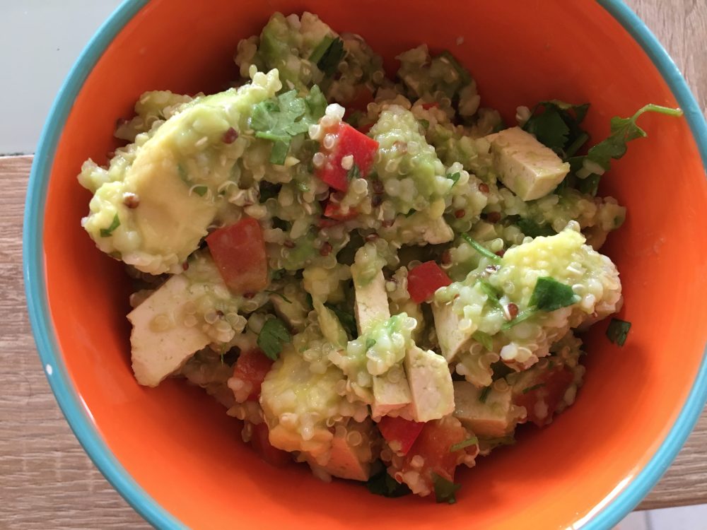 ¡Verás que rica y fresca! Fue con esta ensalada mejicana de quinoa que David me sorprendió con un picnic vegetariano y completo de cumpleaños 🙂 De-li-cio-sa